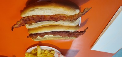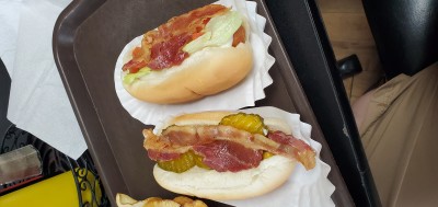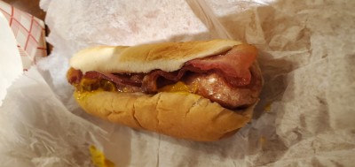 First ripper dog...meaning thy fry till the casing rips. Pretty good dog...bacon wa alittle crispy