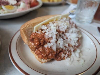Probably a Berks hot dog. Chili is reminiscent of sloppy joes. Roll held up!